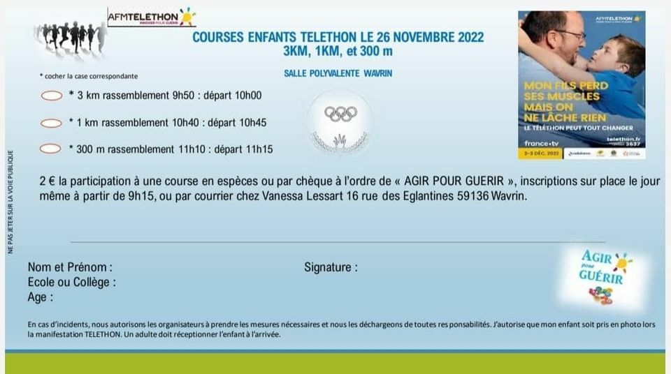 Nous encourageons nos gymnastes à participer aux courses du Samedi 26 novembre.